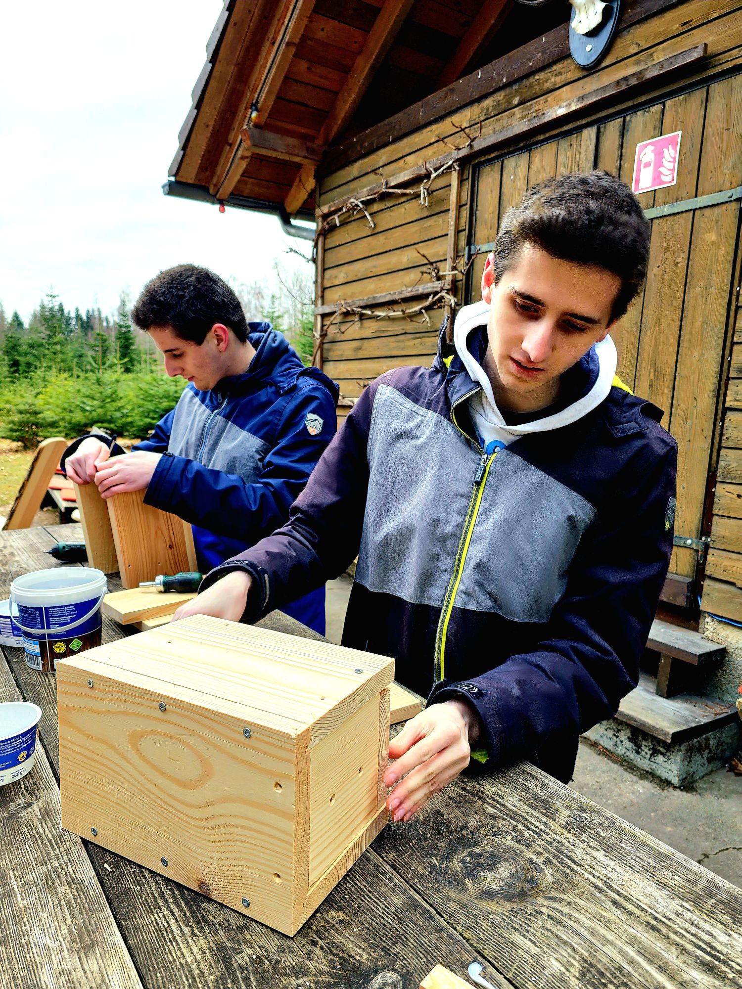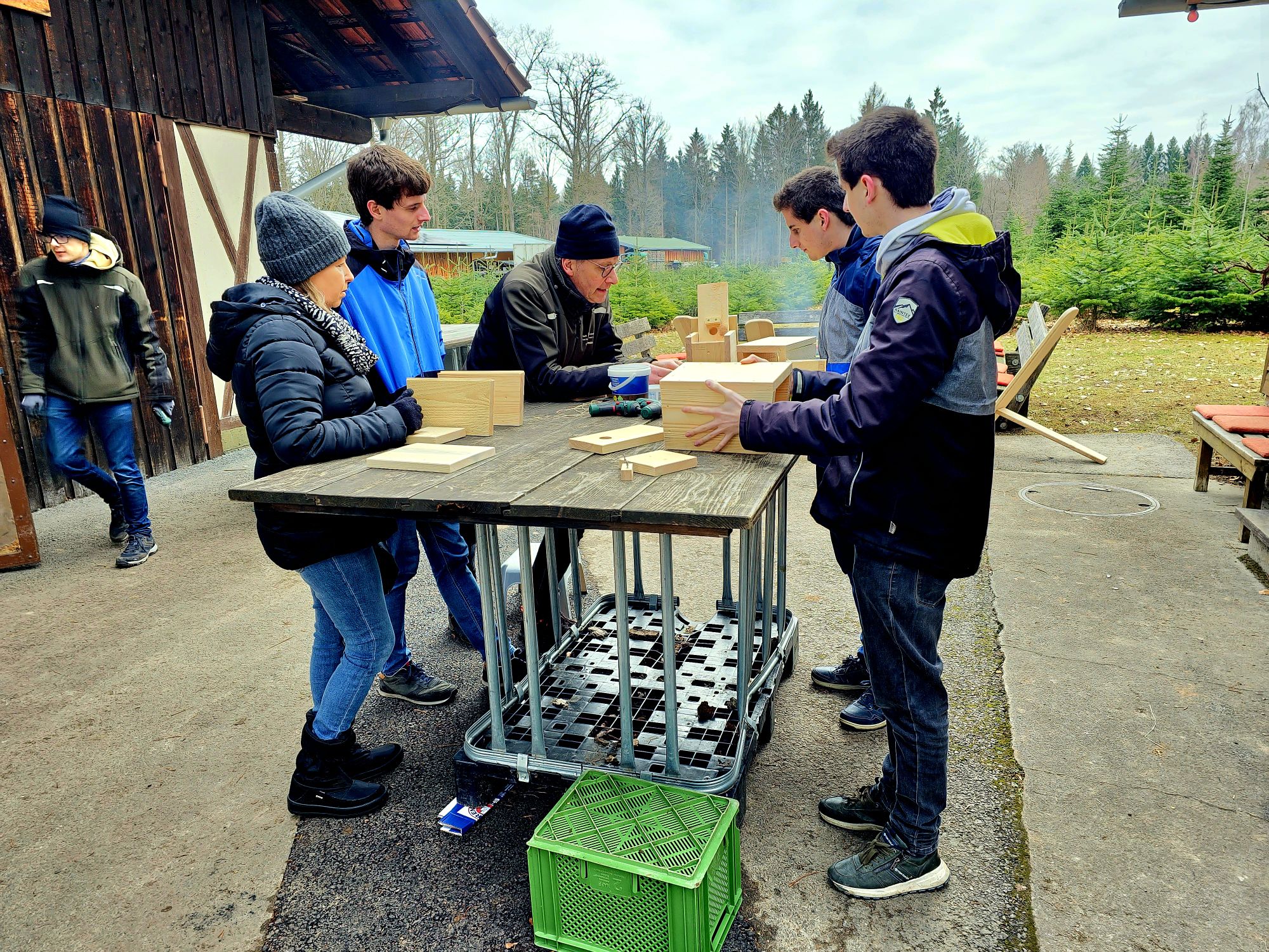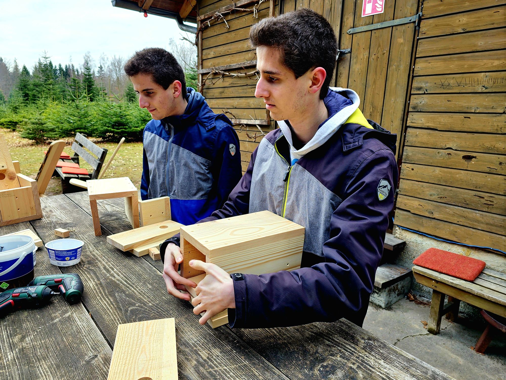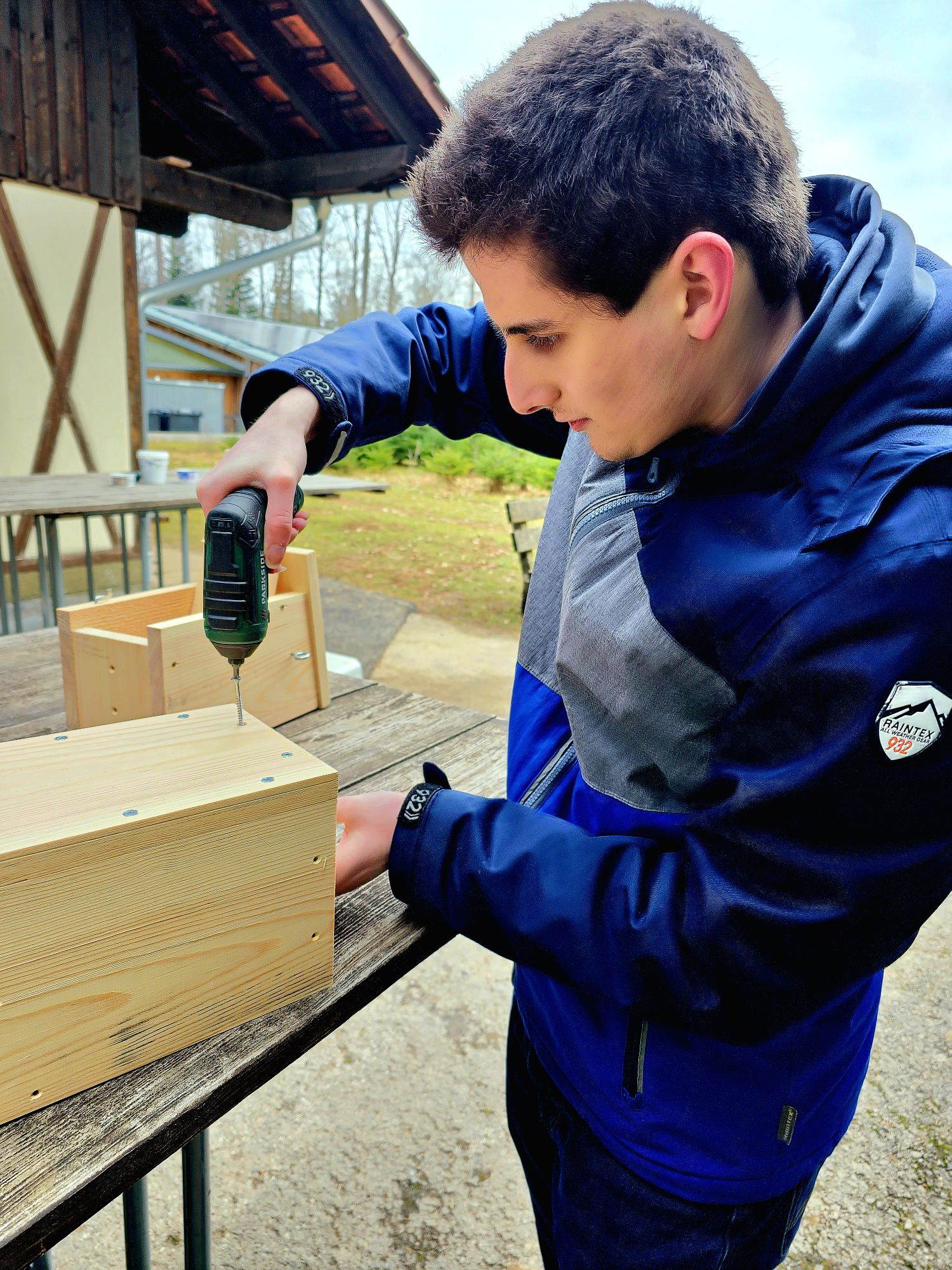 Die freundlichen Mitarbeitenden des Sindelfinger Forsts standen jederzeit mit Rat und Tat zur Seite. Dank der sehr guten Vorbereitung dauerte es nicht lange, bis die ersten drei Nistkästen fertiggestellt waren. 👉 Erfolgserlebnis inklusive – und jede Menge Spaß auch.