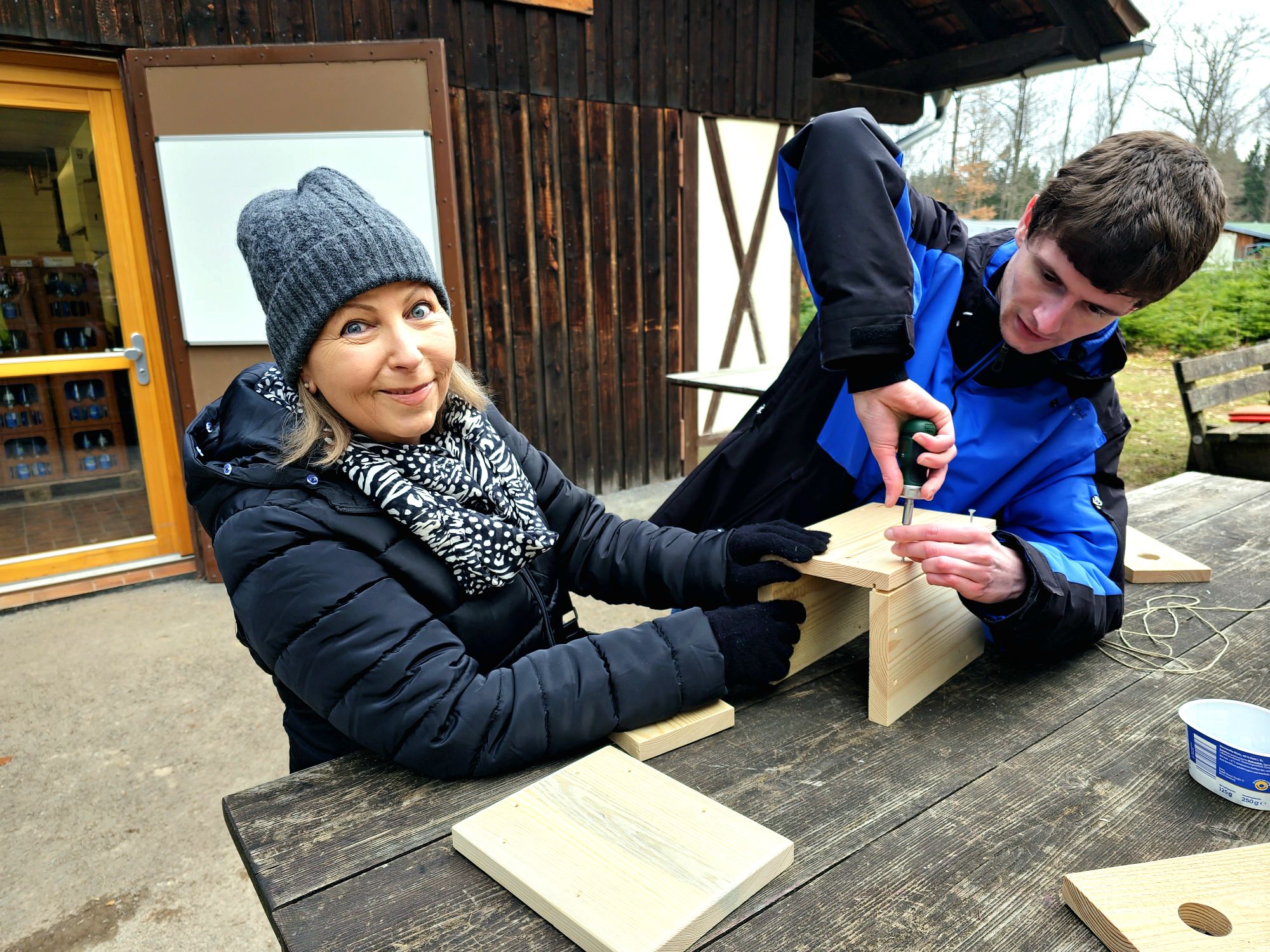 Für einen Unkostenbeitrag von 12 Euro konnte jeder Interessierte einen eigenen Nistkasten bauen und mit nach Hause nehmen – Material und Werkzeug inklusive. Neugierig und hochmotiviert machten sich die Teilnehmer ans Werk.